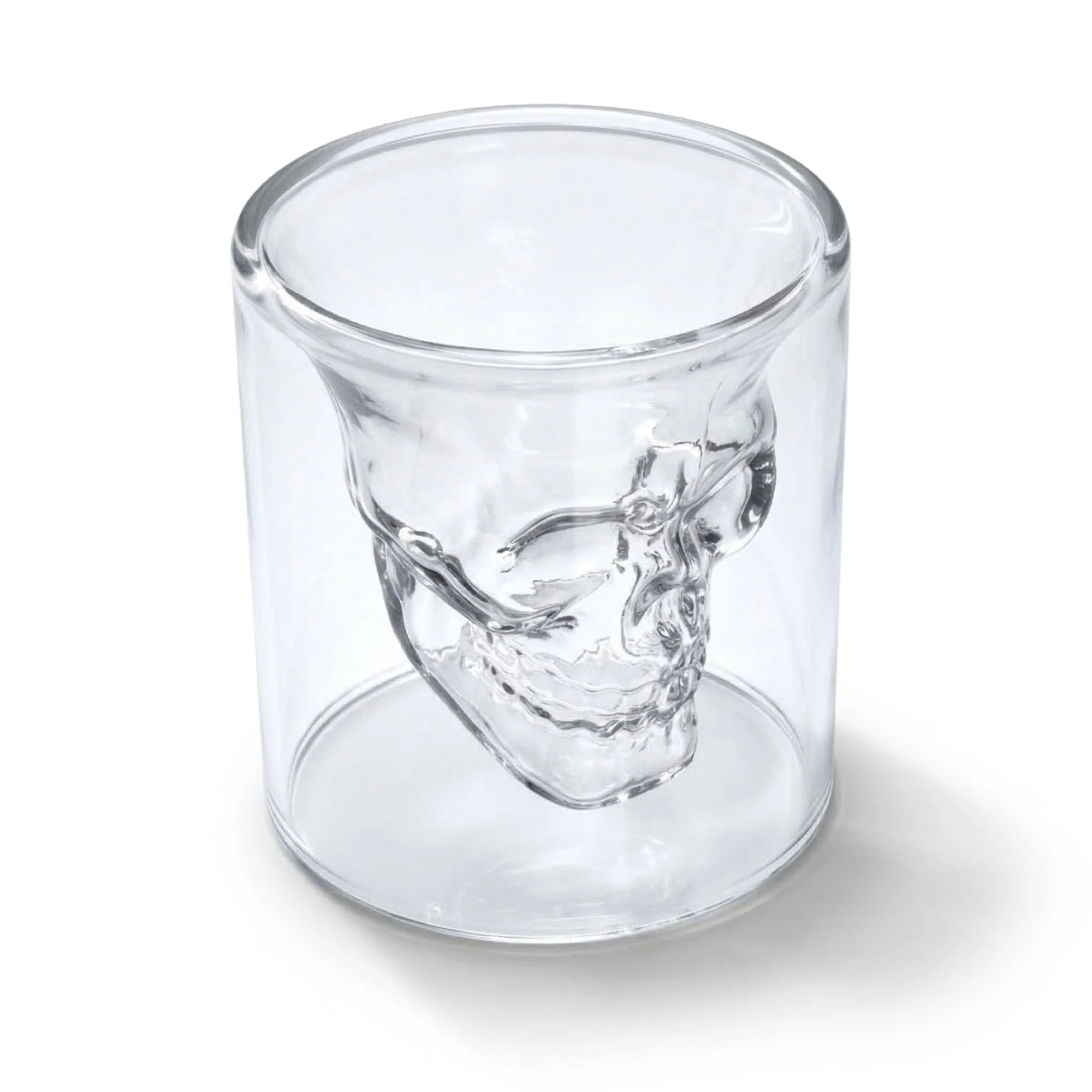This formidable shot glass is Fred's tribute to the Skull of Doom, which Mayan legend claims has the power of life and death, the power to heal or to smite, the power to create miracles. We make no claims beyond these: this glass will hold 2.5 ounces of your favorite beverage and will stare right in your eye as you down your shot. Don't blink! Hand-blown crystal-clear borosilicate glass.